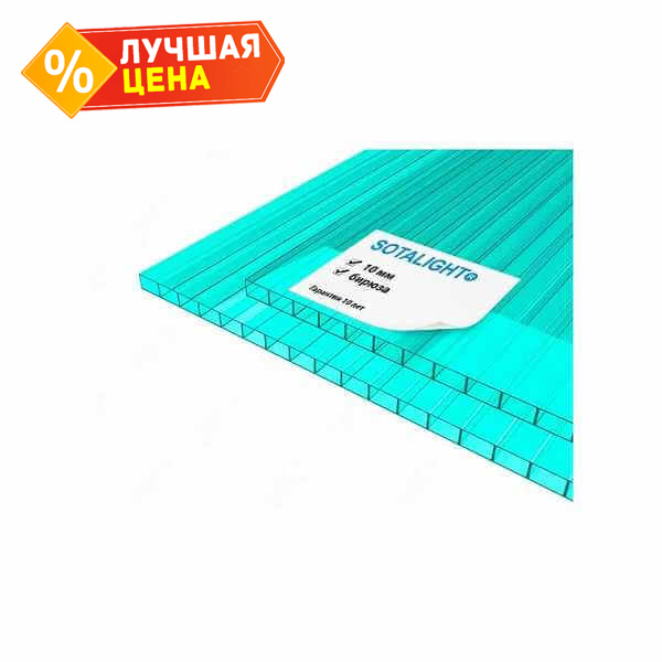 Сотовый поликарбонат 10 мм SOTALIGHT бирюза 2100х6000 мм
