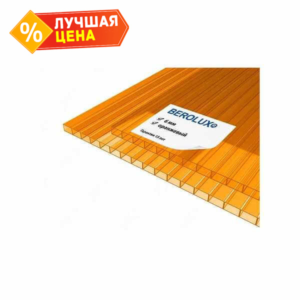 Сотовый поликарбонат 6 мм BEROLUX оранжевый 2100х12000 мм