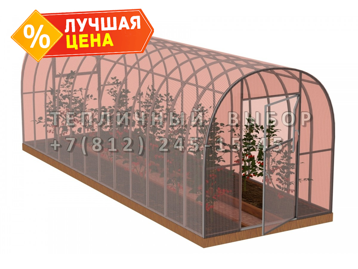 Теплица из поликарбоната-фито Усиленная Арочная 2,1х6 h=2 м профиль 25х25 мм