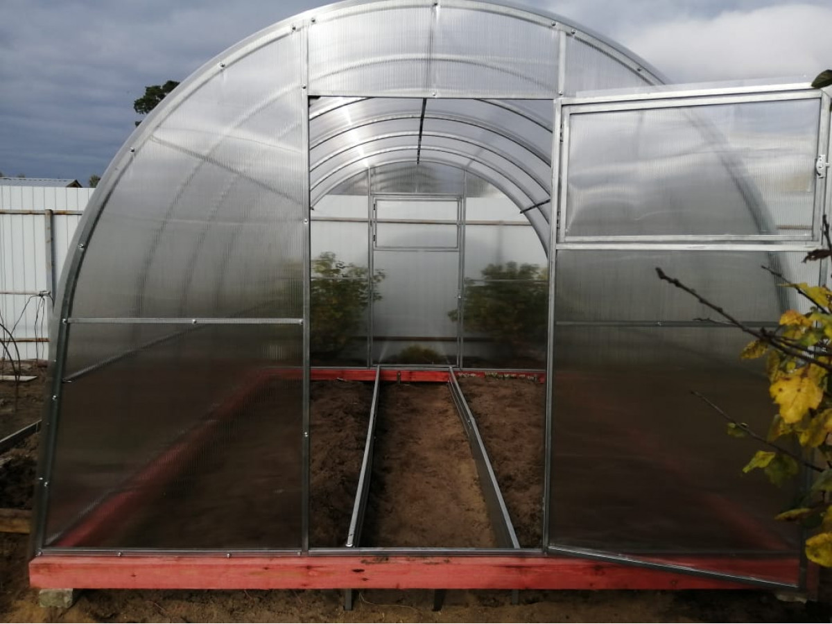 • оптимальная ширина теплицы позволяет организовать 2 грядки и 1 проход в ней