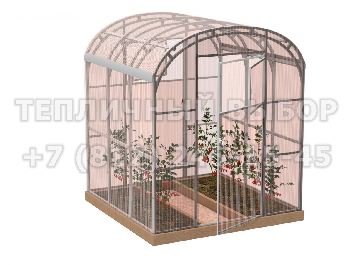 Теплица из поликарбоната-фито Усиленная Прямостенная 2,1х2 h=2.1 м профиль 20х40 мм