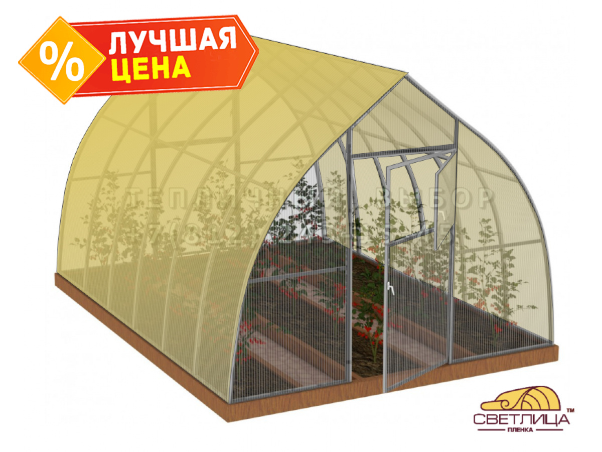 Теплица из поликарбоната и пленки светлица Усиленная Капелька 3х4 h=2.3 м профиль 25х25 мм